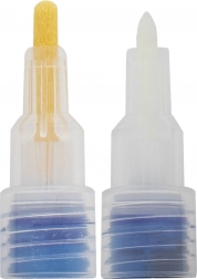 La punta fine è ideale per dettagli, contorni e lettering, mentre la punta più larga riempie facilmente le aree e garantisce una copertura decisa. Per il miglior risultato, pulite la superficie prima dell’applicazione e attivate i pennarelli nuovi testandoli prima su carta.