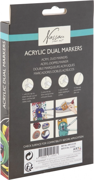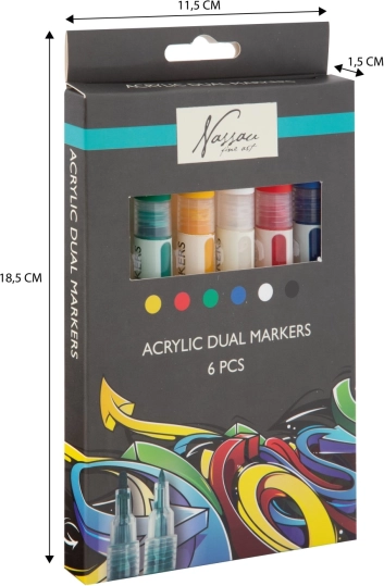 Questo pratico set di pennarelli acrilici dual offre tonalità vivaci e coprenti e la comodità di due punte in ogni marker. Con essi realizzerete scritte, illustrazioni, decorazioni e progetti fai-da-te – dalla pittura su carta e cartone alla decorazione di sassolini, legno o scarpe.
