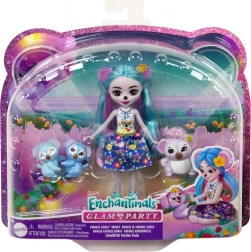 Scopri il mondo della fantasia con la famiglia di koala Enchantimals Joette. Questo set fa parte della collezione Glam Party, dove tutti gli amici della foresta vivono incredibili avventure insieme ai loro cuccioli. La bambola Johana misura 15 cm e ha lunghi capelli blu con ciocche rosa, orecchie sporgenti e un fiore giallo sulla testa. Indossa un top originale e una gonna blu, porta scarpe blu e ha arti snodabili.