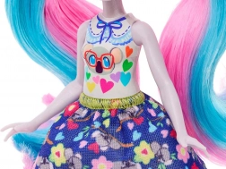 La bambola è dotata di lunghi capelli blu con ciocche rosa e un abbigliamento colorato che catturerà l’attenzione di ogni bambino.