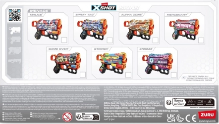 La serie di blaster X-Shot Skins è l’occasione per personalizzare l’aspetto dell’arma che bambini e adulti conoscono dai videogiochi! Il X-Shot Skins Menace è disponibile in 7 skin uniche (varianti di colore) tra cui scegliere. Crea il tuo arsenale di look e conta sempre sull’affidabilità del tuo blaster in ogni utilizzo! L’arma è dotata di un vano inferiore per due colpi, così le munizioni sono sempre a portata di mano!
