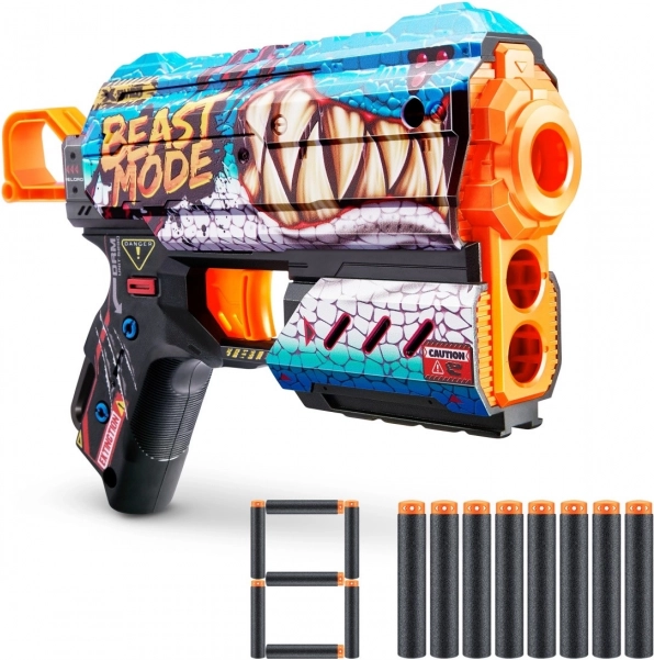 Il tema Beast Mode della serie SKINS dona al blaster un look unico con grafica dettagliata e colori vivaci. La forma compatta e l’impugnatura ergonomica assicurano una presa confortevole anche durante sessioni di gioco più lunghe.