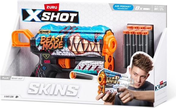 Il blaster X-Shot Skins Flux – Beast Mode, leggero e resistente, offre azione rapida e tiri precisi all'aperto e in casa. Offre raggio fino a 27 m, nella confezione ci sono 8 dardi in foam e per ricaricare al volo c’è un supporto frontale per 2 dardi. Il motivo SKINS Beast Mode colpisce al primo sguardo.