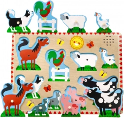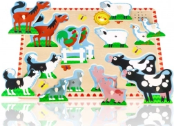 Puzzle in legno divertenti ed educativi per bambini con tema degli animali della fattoria. Grazie ai pezzi colorati e alla facile presa, i bambini impareranno a riconoscere gli animali e svilupperanno la loro motricità fine.