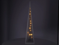 Piramide in plastica con telaio metallico bianco, riempita di stelline che si muovono al centro della piramide ✨
