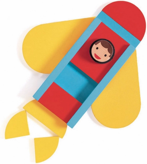 Il set contiene 33 pezzi in legno colorati di varie forme, che invitano i bambini a giocare e assemblare diversi veicoli.