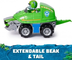 Parti per missioni d’azione con Rocky e il suo veicolo trasformabile della collezione Paw Patrol: Giungla. Con una sola pressione il veicolo passa alla modalità salvataggio – si rivelano il becco e la coda di tartaruga, utili per superare gli ostacoli. Un giocattolo perfetto per sviluppare fantasia e motricità fine dei bambini.