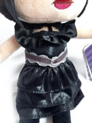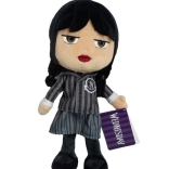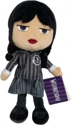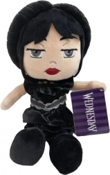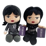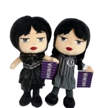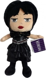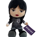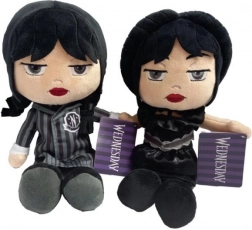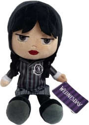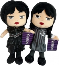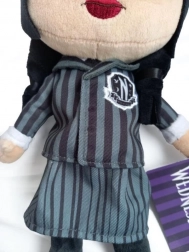 Scopri il fascino del famoso eroe della serie con la nostra stilosa bambola di peluche Wednesday Addams. Questa bambola di 32 cm è fedelmente realizzata in due costumi iconici: divisa scolastica grigia di Nevermore e abiti neri stravaganti indossati alla Nevermore Rave'N Dance.