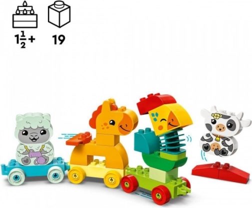 Il trenino degli animali LEGO DUPLO farà felici tutti i piccoli amanti degli animali e dei veicoli. I bambini costruiscono il gallo, il cavallo, la pecora e la mucca, li fanno sedere sui vagoncini abbinati per colore e partono per un’avventura. Grazie ai mattoncini grandi, il set si assembla facilmente e favorisce il learning by playing.
