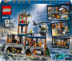 Scopri l’emozionante mondo di LEGO CITY con l’isola-prigione ricca di azione. Questo set dettagliato include una torre di guardia, celle con trucchi di evasione, eliporto, motoscafo della polizia e elicottero e minifigure di agenti e detenuti per infinite storie di inseguimenti e fughe.