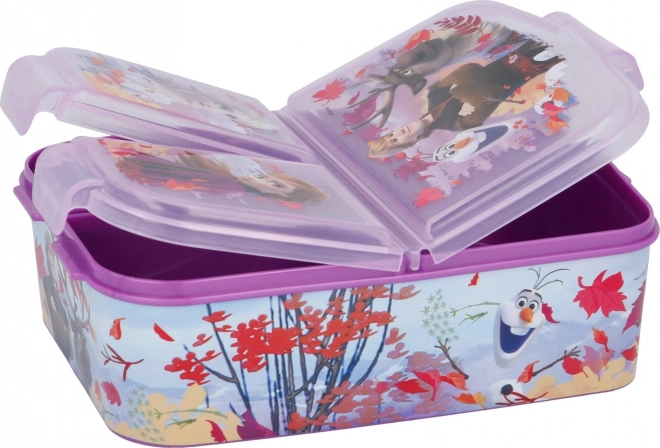 Il lunch box multi scomparto per bambini con licenza ufficiale FROZEN II conquista con il suo bel design e l’organizzazione interna studiata. Tre sezioni separate permettono di dividere frutta e verdura, panino e piccoli snack, così la merenda resta fresca e ordinata per tutto il giorno.