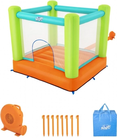 Castello gonfiabile saltellante Bestway 194×175×170 cm. Pareti laterali in rete per la sicurezza, cuciture rinforzate, portata 113 kg. Soffiatore, ancore e borsa inclusi.
