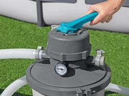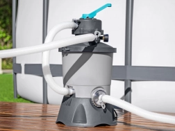 Il filtro a sabbia con capacità di 3596 litri all’ora assicura acqua pulita in modo rapido ed efficiente.