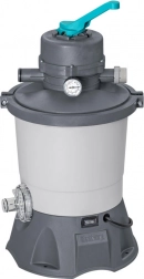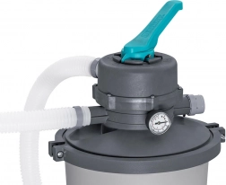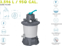 Grazie alla capacità di 3596 l/h, la pompa è ideale per piscine con volume da 1.100 a 18.100 litri. Per il funzionamento richiede un riempimento di sabbia (sabbia di quarzo #20, granulometria 0,45–0,85 mm, circa 8,5 kg) oppure sfere filtranti ad alte prestazioni Polysphere™ con peso di circa 240 g.