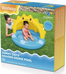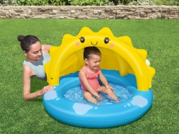 La piscina gonfiabile Bestway è la scelta perfetta per i tuoi bambini durante le calde giornate estive. Grazie al suo design amichevole con sole e nuvole blu offre non solo gioia di gioco, ma anche un rifugio sicuro dal sole.