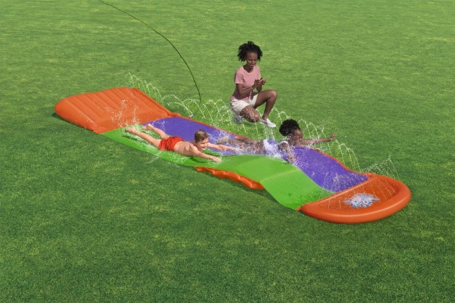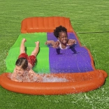 Lo scivolo SplashCoaster del marchio Bestway porta il divertimento all'aperto nel tuo giardino! Grazie allo scivolo a due corsie lungo 4,88 metri, è ideale per gare e divertimento di gruppo. Gli spruzzi d'acqua assicurano una scivolata fluida e veloce.