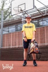 La grafica decisa a tema basket dona un tocco sportivo alla tua attrezzatura e spicca sia in allenamento che a scuola.