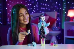 La bambola Frankie Stein dell’edizione Creepover Party offre una perfetta combinazione di moda e fantasia. Grazie ai colori vivaci, alle ciocche blu nei capelli e agli iconici dettagli a fulmine, conquisterà subito i bambini. Il set è ricco di piccoli accessori che stimolano storie creative e cambi d’abito alla moda.