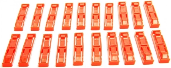 Clip pratiche per un collegamento solido e sicuro dei segmenti della pista. La confezione include 20 pz di clip compatibili con i sistemi CARRERA Evolution, Digital 132 e Digital 124. Garantisce guida stabile, connessioni sicure e montaggio semplice senza attrezzi.