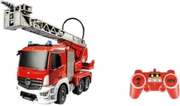 Questo modello RC dettagliato Mercedes‑Benz Antos è prodotto con licenza ufficiale e offre ai bambini un’esperienza di gioco autentica. Grazie ai colori vivaci, alla struttura resistente e agli effetti funzionali (fari anteriori e posteriori, lampeggianti sul tetto) appare e si comporta come un vero camion dei pompieri. Il serbatoio dell’acqua integrato con tubo e pompa permette di spruzzare acqua, mentre la scala girevole a 360° con estensione fino a circa 55 cm amplia il raggio d’azione.