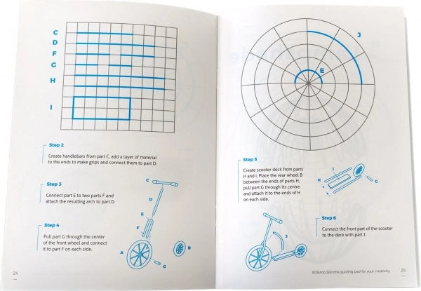 Tappetini in silicone per penne 3D con brochure di 14 progetti. Silicone antiscivolo, connettori a puzzle per ampliare la superficie. Ideale per bambini e adulti.