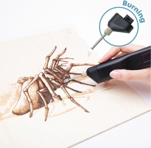Adatto per decorare oggetti in legno, accessori in pelle o per personalizzare i regali. Le prestazioni stabili e la compatibilità con il sistema Multipro ti permettono di passare rapidamente tra disegno 3D, taglio, saldatura e pirografia.