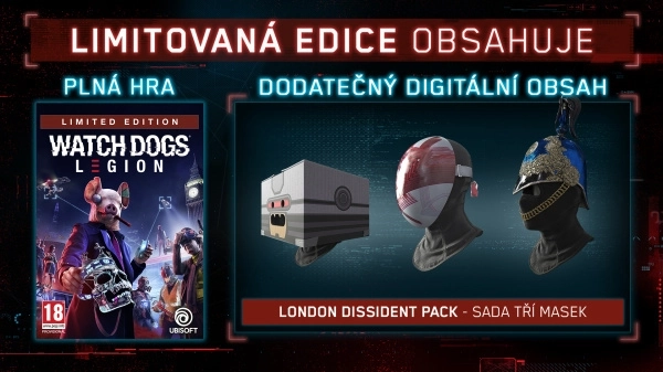 - Gioco completo Watch Dogs Legion, London Dissident Pack (3 maschere), bonus preordine Golden King Pack (maschera, skin pistola, skin auto)