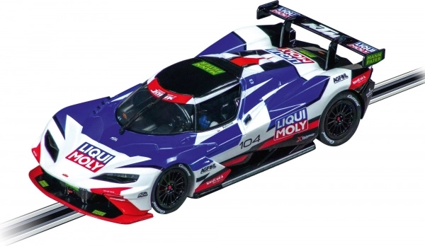 Nella confezione sono inclusi due modelli con licenza – Mercedes‑AMG GT3 “SunEnergy1 Racing, No.75” e KTM X‑BOW GTX “Liqui Moly, No.104” – insieme a rettilinei, curve, ponte, unità di alimentazione, 2 controller velocità, trasformatore e accessori. Il sistema può essere facilmente ampliato fino a 4, 6 o 8 corsie e le auto possono essere adattate per il funzionamento digitale (sorpasso, rifornimento, collegamento a PC/mobile/tablet).