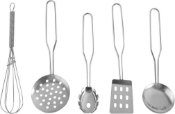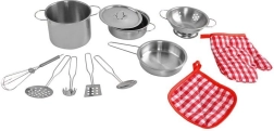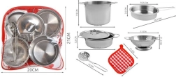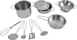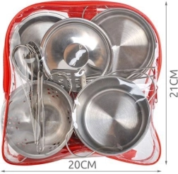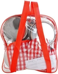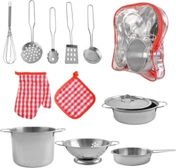 - 13 elementi: include tutto il necessario per un piccolo chef: 2 pentole, padella, scolapasta, coperchio (adatto a qualsiasi pentola), varietà di cucchiai, zainetto trasparente con manico, tovaglietta in tessuto e guanto.
