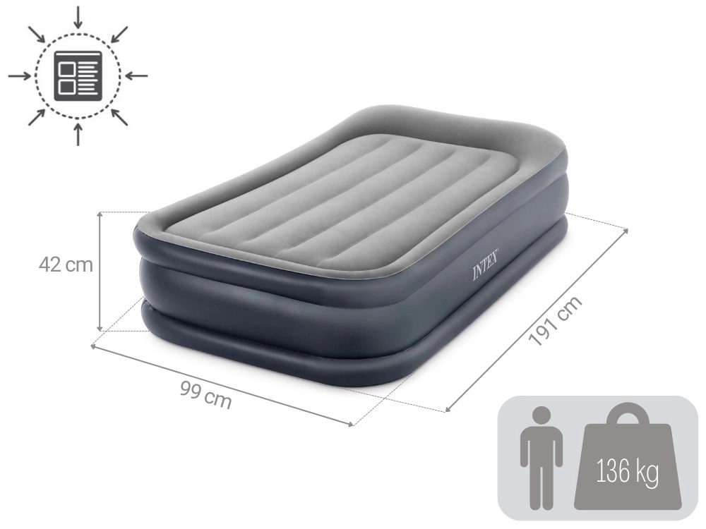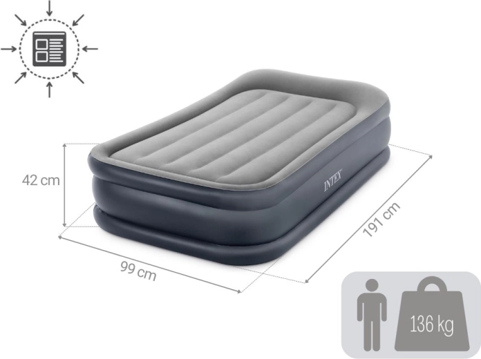 Letto gonfiabile singolo 191 × 99 × 42 cm con pompa elettrica integrata INTEX