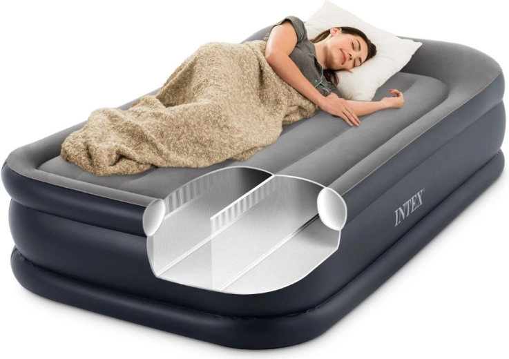 Cerchi un letto aggiuntivo comodo e stabile per gli ospiti, la casa vacanze o i viaggi? Il letto gonfiabile singolo INTEX con altezza di 42 cm offre un comfort paragonabile a un letto tradizionale. La superficie in velour è piacevole al tatto e impedisce lo scivolamento del lenzuolo, mentre la pompa elettrica integrata (220–240 V) garantisce una rapida preparazione al sonno.