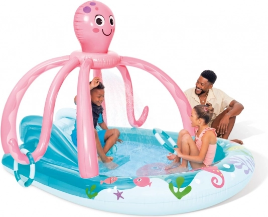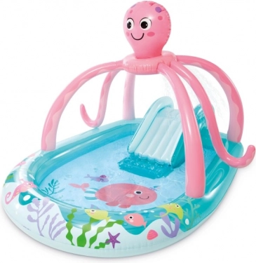 Regala ai bambini un'estate piena di risate con questo spazioso centro giochi a tema polpo. Offre una doccia d’acqua integrata per rinfrescarsi, una comoda base extra gonfiabile, un piccolo scivolo e ricche decorazioni a tema marino. Inclusi due anelli gonfiabili e una toppa di riparazione. Ideale per il divertimento all'aperto in giardino.