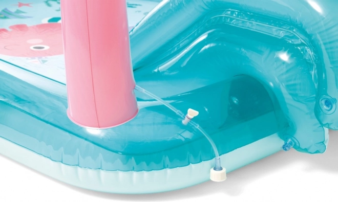 Lo scivolo integrato conduce direttamente alla piscinetta e favorisce il movimento attivo e il divertimento con l’acqua.