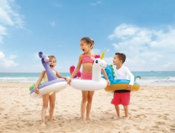 Scegli tra la simpatica lama, l’unicorno da fiaba o il dinosauro giocoso. I colori vivaci aumentano la visibilità in acqua e i bambini li adorano.