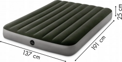 Il materasso in velluto INTEX con dimensioni 191 x 137 x 25 cm è ideale per il riposo di 2 persone. È realizzato in PVC resistente e la superficie superiore è rivestita con tessuto in velluto impermeabile. L'insieme, in una gradevole tonalità di verde, si adatta a qualsiasi interno.