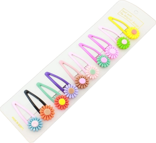 Set di 10 fermagli metallici per capelli. Fermagli in diversi colori a forma di fiore. Un accessorio indispensabile per acconciare e fissare i capelli.