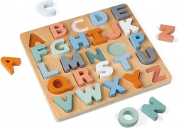 Le colorate lettere in legno si incastrano perfettamente nei contorni fresati, aiutando i bambini a memorizzare facilmente le forme e l’ordine dell’alfabeto.