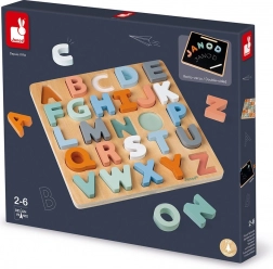 Questo puzzle in legno di alta qualità JANOD unisce gioco e apprendimento. I bambini inseriscono le lettere colorate nei contorni fresati e acquisiscono naturalmente le forme dell’alfabeto. Il retro della tavola funge da lavagnetta per gessetti, così possono esercitare i tratti, le prime parole e il disegno creativo.