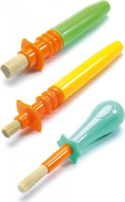 Set di pennelli per bambini del marchio DJECO con setole di qualità e impugnatura ergonomica per le manine. Ideali per i primi dipinti, favoriscono la motricità fine, la creatività e una presa sicura per bambini dai 3 anni.