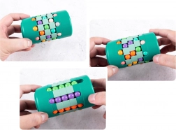 Il rompicapo rotante funziona con un principio semplice: ruotando i singoli anelli sposta le palline in modo che in ogni fila i colori siano uniformi. Un foro vuoto consente di muovere le palline e creare le combinazioni corrette. Sembra facile a prima vista, ma riesce a intrattenere per ore e ore.