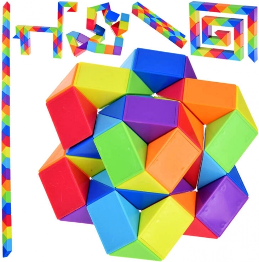 Questo puzzle colorato di tipo Magic Snake è composto da segmenti triangolari che si possono ruotare liberamente per creare un’infinità di forme. Inizia con oggetti semplici e passa gradualmente a creazioni più complesse – la fantasia non ha limiti.