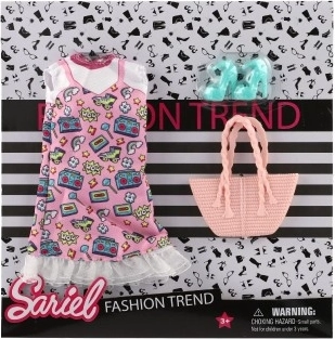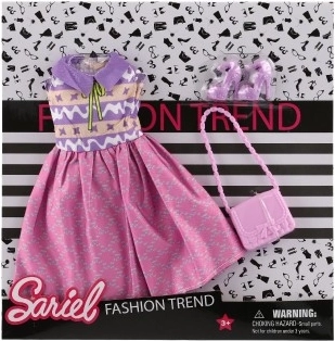 La confezione contiene tutto ciò di cui hai bisogno – abiti, scarpe e borsetta per un look perfetto della tua bambola.