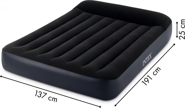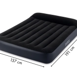 Il materasso in velluto INTEX con dimensioni 191 x 137 x 25 cm è ideale per 2 persone. Realizzato in robusto materiale PVC, la parte superiore è rivestita con un velluto impermeabile piacevole al tatto. Il colore blu scuro si adatta a qualsiasi interno. Grazie alla pompa elettrica integrata (alimentazione 220 - 240 V), il tempo necessario per preparare il letto gonfiabile all'uso è di 250 secondi. Con la valvola Boston lo sgonfi in un minuto, lo pieghi e lo riponi nell'armadio.