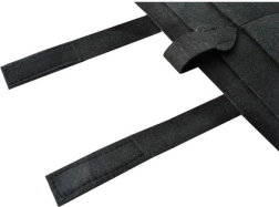 L'organizer è realizzato in materiale di feltro, che garantisce leggerezza e facilità di utilizzo. L'installazione dell'organizer è rapida e intuitiva: la parte superiore si fissa alla parte inferiore del poggiatesta con velcro, e la parte inferiore si aggancia al sedile tramite ganci metallici.