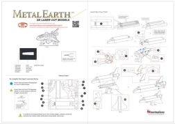 METAL EARTH Space Shuttle Atlantis è un preciso modello 3D in metallo tagliato al laser. Da una lamina d’acciaio quadrata da 11 × 11 cm assemblerai una replica fedele del leggendario orbiter della NASA con incisioni fini, ugelli e scritte “United States” e “USA”. Il modello assemblato è ideale come pezzo da collezione e come regalo originale.