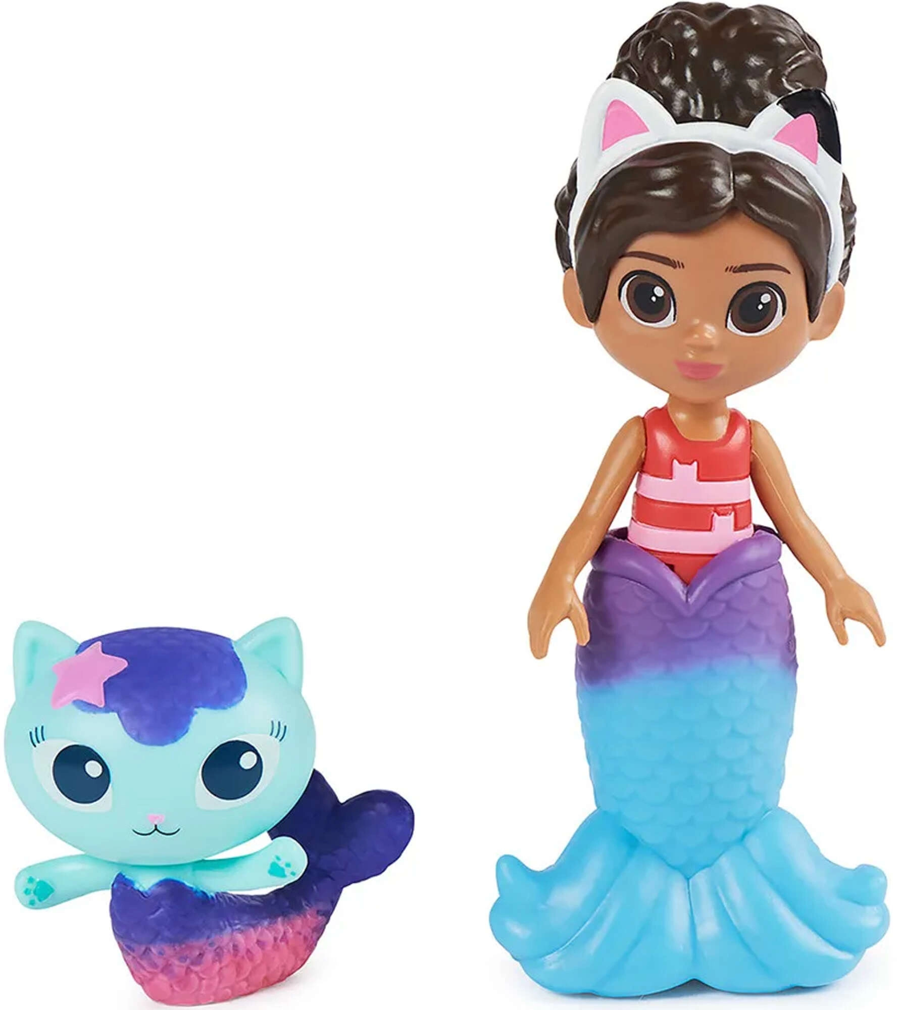 Entra nel mondo della Casa delle Bambole con un fantastico set con piscinetta, dove Gabby e la Sirenina scendono dallo scivolo rosa direttamente nella piscinetta azzurra. Con il nebulizzatore a forma di polipo attiva la magica variazione di colore delle loro pinne caudali e scopri la sorpresa nascosta nella grande conchiglia sotto lo scivolo.