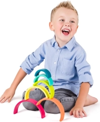 I blocchi di legno a forma di arcobaleno incoraggiano i bambini alla creatività e fantasia nel costruire diverse forme.