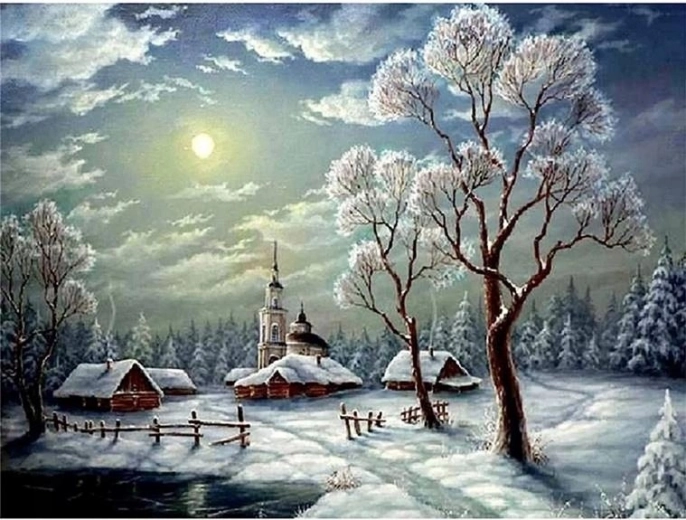 Questo set creativo per la pittura con diamanti contiene tutto il necessario per creare un meraviglioso quadro scintillante. Con la penna applicatrice posizionerai le singole pietrine sulla tela prestampata con strato adesivo: in modo semplice, pulito e con un risultato bellissimo. L’opera finita con il motivo del paesaggio invernale può essere poi incorniciata ed esposta.