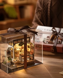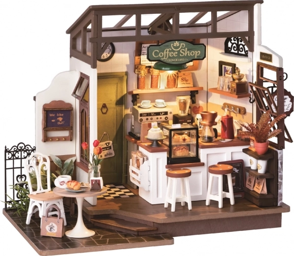 Porta l’atmosfera di una caffetteria accogliente direttamente a casa tua. Il puzzle 3D in legno RoboTime presenta un diorama dettagliato con bancone, sgabelli, piante, insegne e accessori che insieme creano un insieme armonioso. Grazie alla struttura ben studiata in legno di qualità, il modello è solido, preciso e, una volta assemblato, è perfetto come decorazione o pezzo da collezione.
