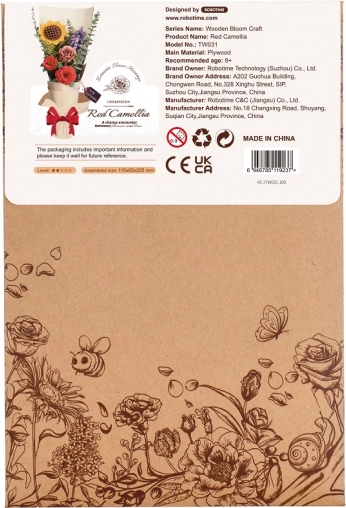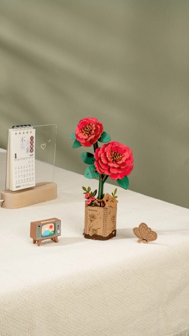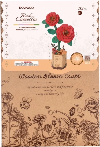 Questo elegante puzzle 3D in legno crea un modello dettagliato di camelia rossa in vaso. I pezzi in legno di qualità ed ecologici si incastrano con precisione e, una volta completato, il modello è una decorazione di stile per tavolo, mensola o studio.